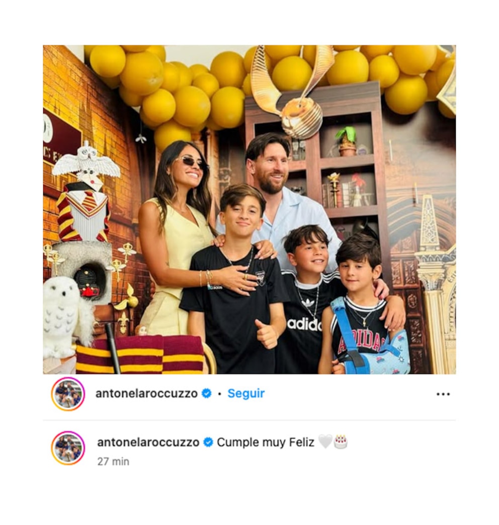 Esta no es la primera vez que Antonela exterioriza su amor por el joven mago y su mundo. En febrero pasado, durante la celebración de su cumpleaños, eligió una ambientación especial para el festejo: la temática de Harry Potter se apoderó de la decoración y de los detalles, como se pudo ver en la foto familiar que compartió en Instagram junto a Messi y sus tres hijos. El salón estaba repleto de referencias a la saga, desde el famoso “sombrero seleccionador” hasta los colores y escudos de las casas de Hogwarts.
